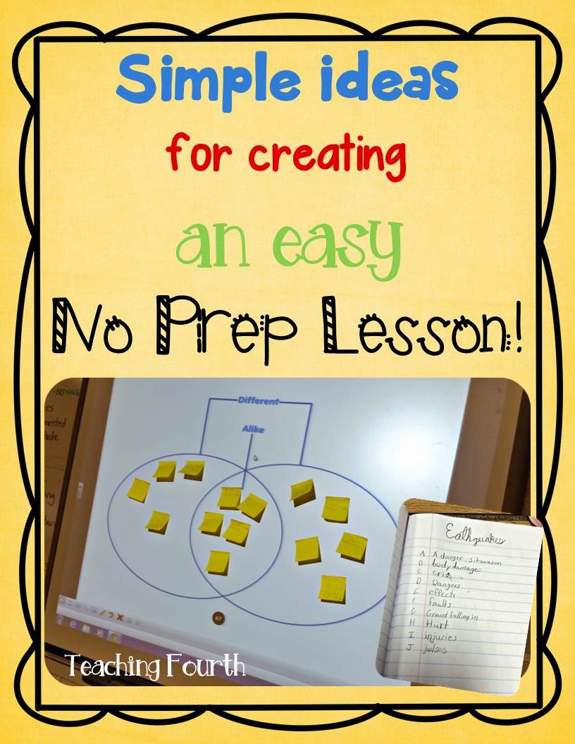After reading, I used stick notes for “jot notes.” Our focus during this lesson was comparing and contrasting. For example, we used the text to compare and contrast tsunamis and hurricanes. Now, I could have taken the time to create a nice and colorful anchor chart, but remember, my theme today is no prep. I chose, instead, to use a pdf version of a Venn diagram to project onto my Smartboard. The one I used was part of my reading series, but here is a free one that I found online. I simply projected the Venn diagram. I gave one set of students “tsunamis”, another set “hurricanes”, and the final set of students “both”. Each student looked back and read closely in the text to find the information and write it on the sticky note. We then went around the classroom and shared, and students put the sticky note in the correct circle on the board. This was also a great way for me to assess who needed more instruction with comparing and contrasting. Once again, no prep! Super easy, but very effective! I must say that I think this lesson was a huge success! Every lesson does not have to be hard for the teacher. Sometimes the simplest lessons turn out to be some of the best.